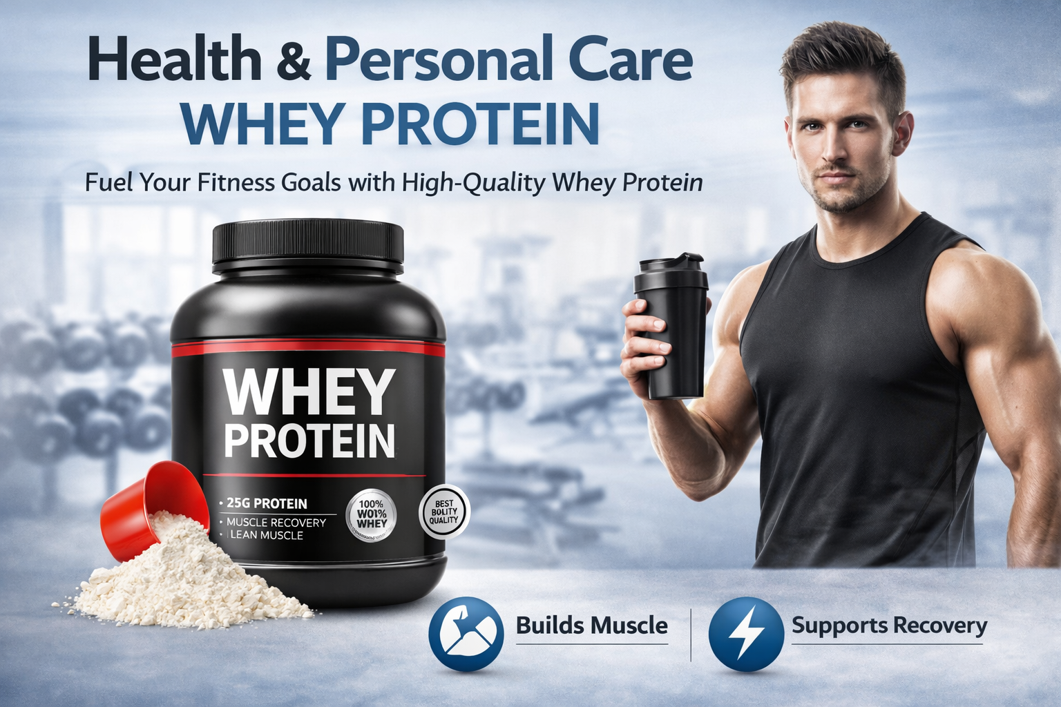 Whey protein is a high-quality protein derived from milk during cheese production. It contains all essential amino acids and is especially rich in BCAAs (like leucine) which help muscle growth.